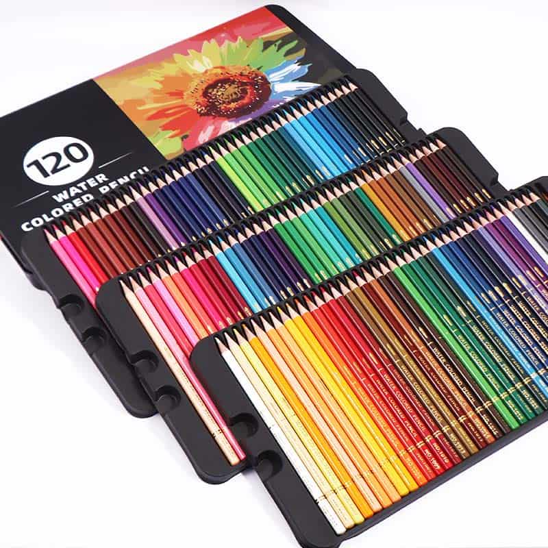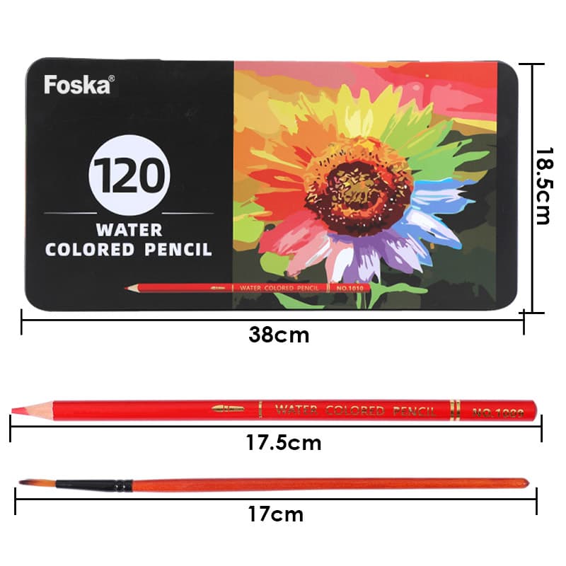Juego de 120 lápices de colores vibrantes N.° de artículo: CQ3004 El paquete incluye: 120 lápices solubles en agua + 1 pincel de cerdas Estilo: Lápiz soluble en agua Longitud: 17,5 cm (7") Recambio de lápiz: Grafito Material del cuerpo: Madera Certificado: ASTM D4236, EN71, MSDS Embalaje: 120 unidades / Caja de color Caja de cartón: 9 cajas / Cartón