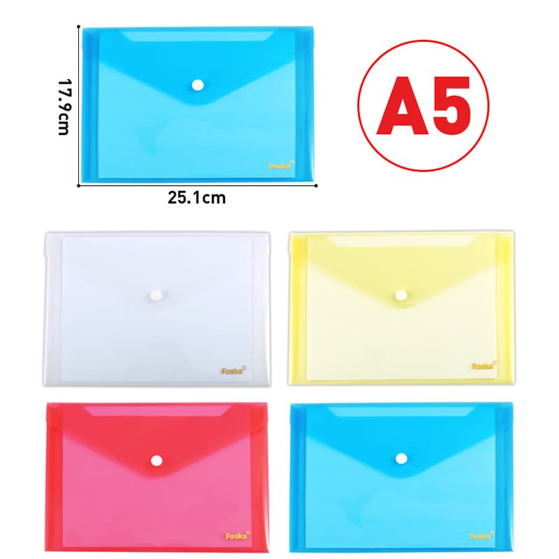 FoskaFOSKA Clear A5 Document Wallet Storage Folder with Snap Closure