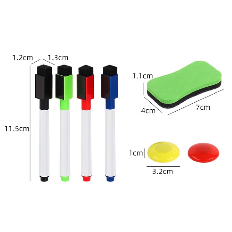 Magnetic buckle * 2, eraser * 1, whiteboard pen * 4, ink weight: 0.09gmarca :