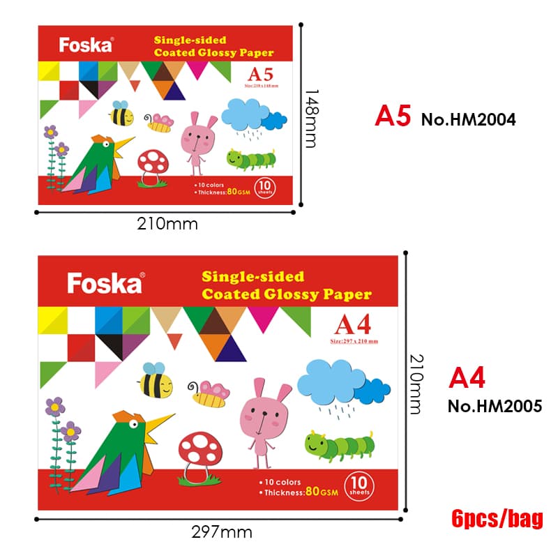 Elaborado con un grueso, 80 g/m² A4/A5 Papel brillante estucado de una sola caraOfrece una excelente durabilidad que resiste desgarros al doblarlo o envolverlo, a la vez que mantiene una sensación ligera y fácil de manejar. Una cara presenta un acabado estucado de alto brillo que realza los colores vibrantes y saturados del papel, haciendo que patrones, logotipos o tonos lisos y brillantes destaquen con un brillo profesional y lujoso. El reverso sin estucar garantiza una fuerte adhesión para cintas, pegatinas o pegamento, evitando que se despeguen y manteniendo sus envoltorios impecables.
