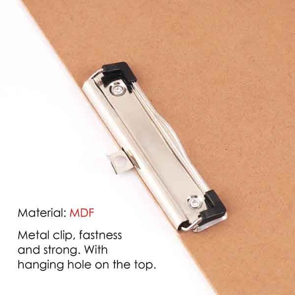 Tablero de clip plano hecho de material MDF duradero, diseñado para escribir y dibujar, ideal para uso escolar y de oficina.