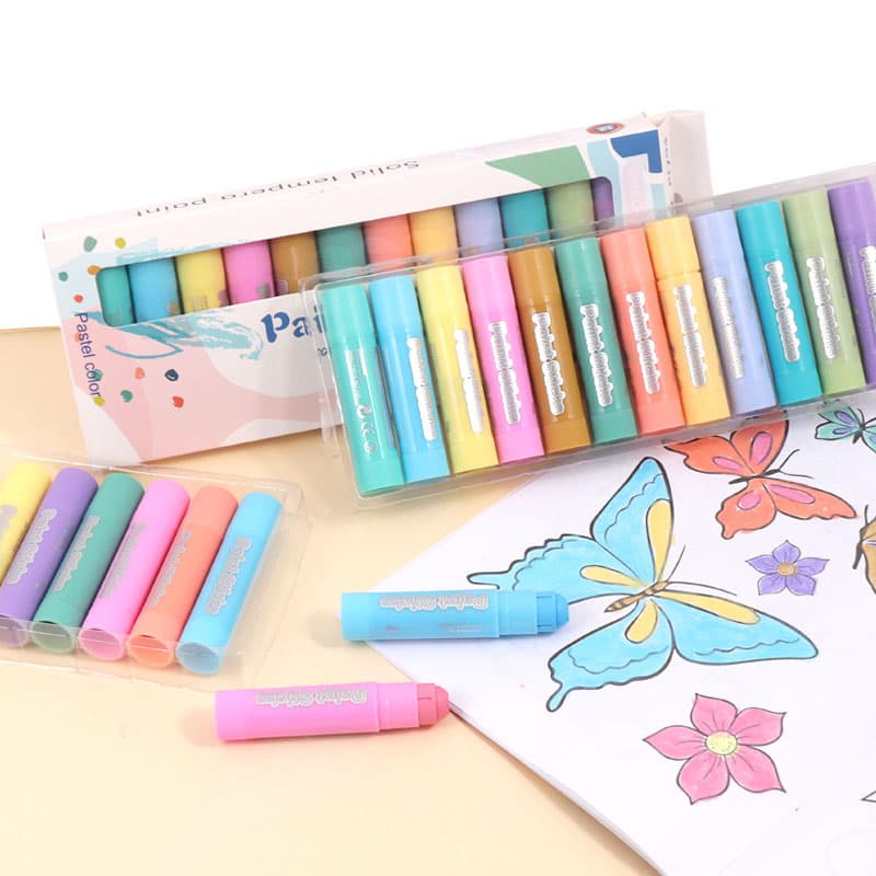 Foska macaron-colored paint sticks are made with non-toxic, kid-friendly materials. Accidental marks on skin or clothes? Simply wipe away with water and soap! Parents can relax while kids paint freely.