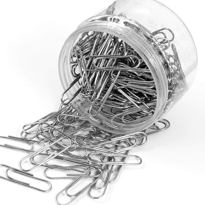 Para uso en oficina, se pueden elegir clips de papel niquelados o recubiertos de vinilo.