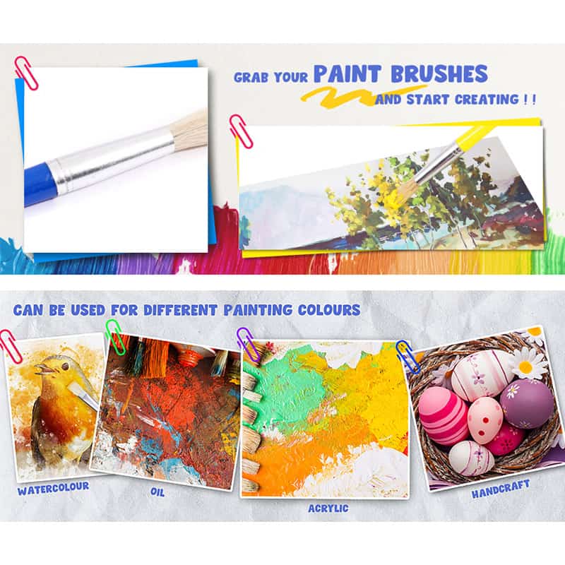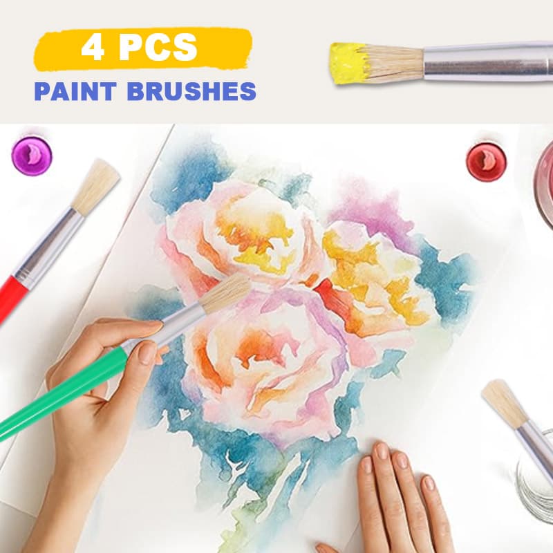 Our kids' painting brushes boast premium bristles: resilient, non-shedding, and elastic for seamless strokes. They absorb pigments effectively for vibrant colors, with rounded tips to protect paper, ensuring safe, enjoyable painting.