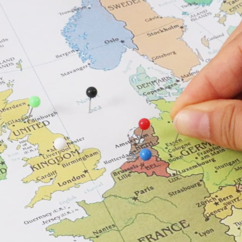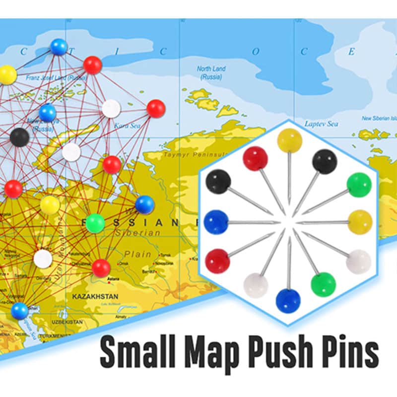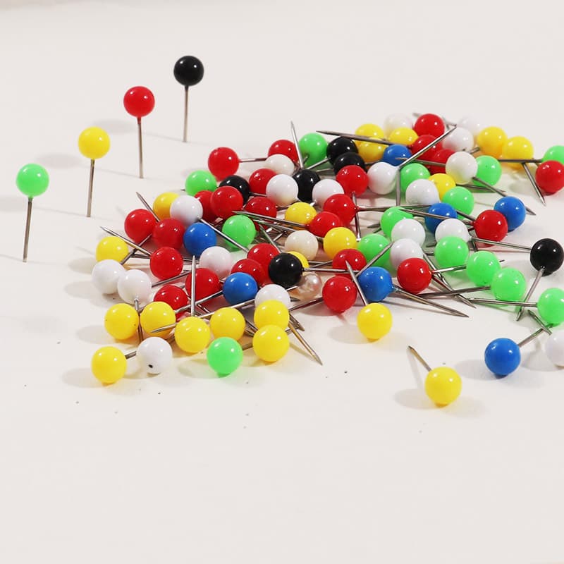 Alfiler de mapa con cabeza redonda empaquetado en una caja transparente